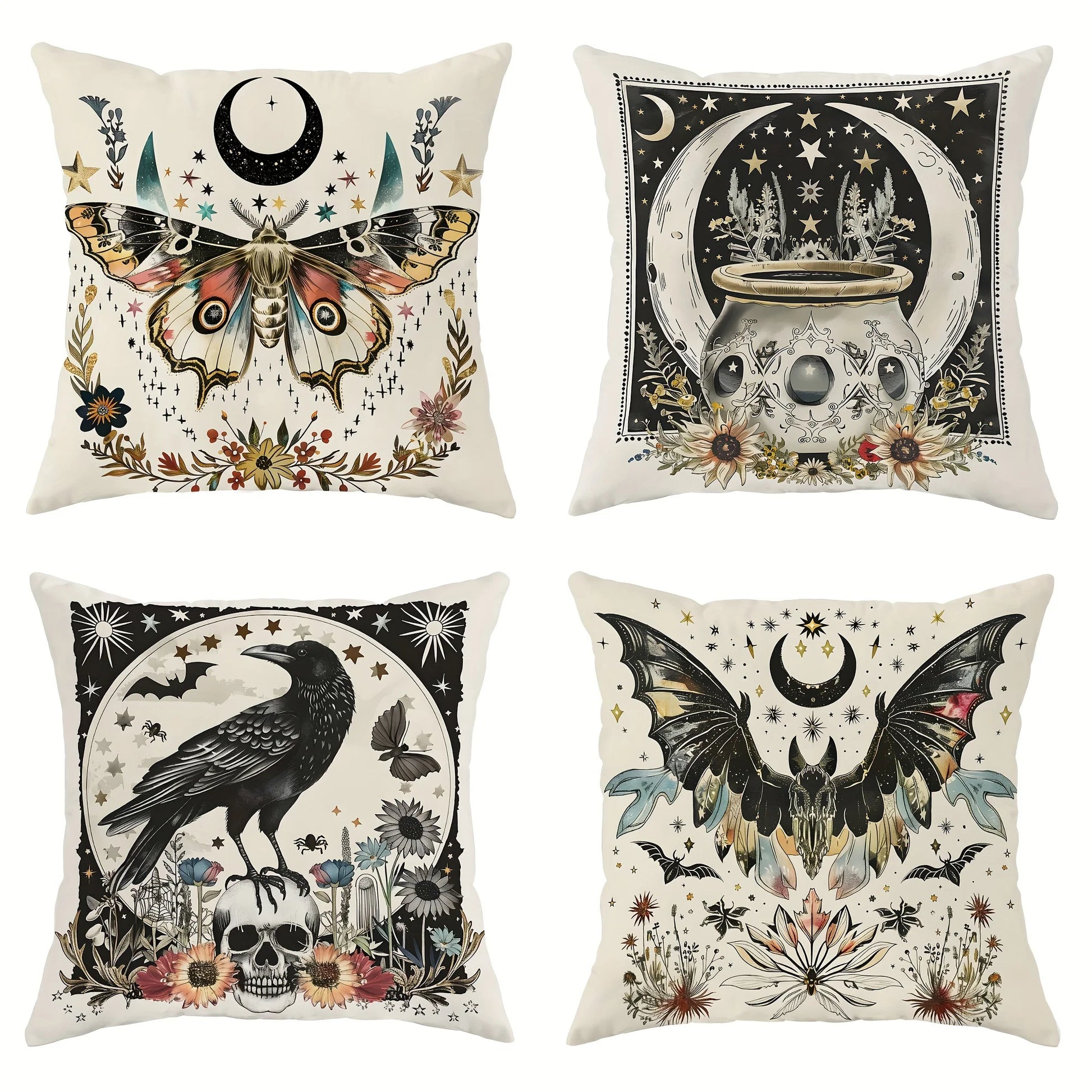 Single pillow cover (18x18 in / 45x45 cm) with gothic-inspired Halloween print